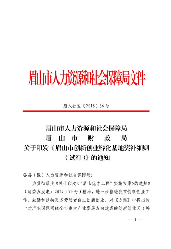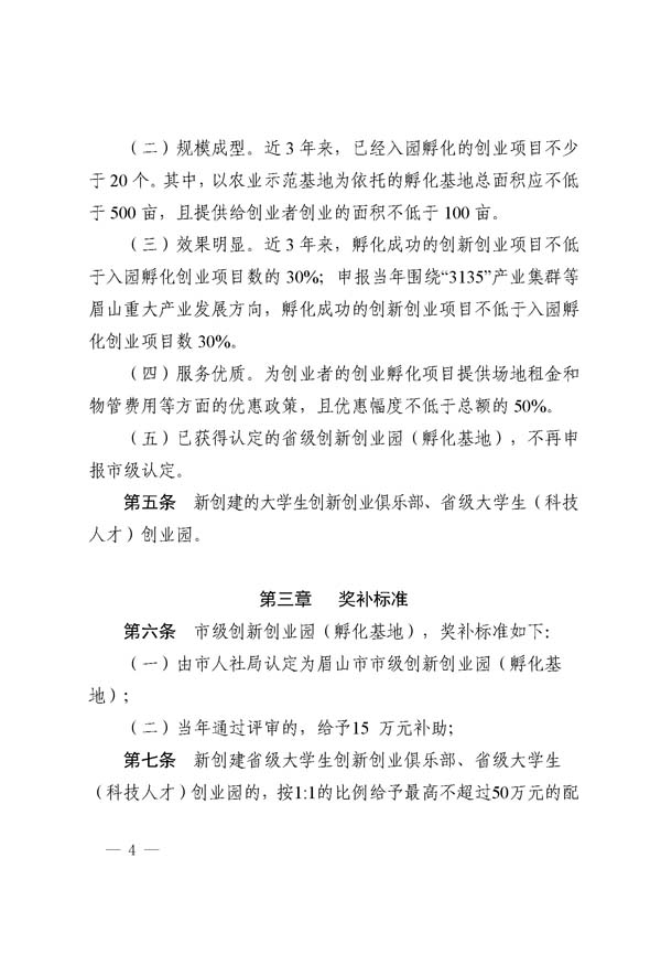 眉山市創(chuàng)新創(chuàng)業(yè)孵化基地獎(jiǎng)補(bǔ)細(xì)則(試行)
