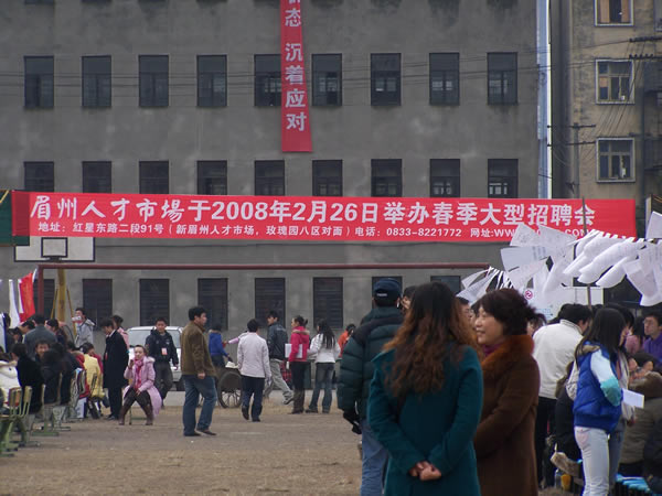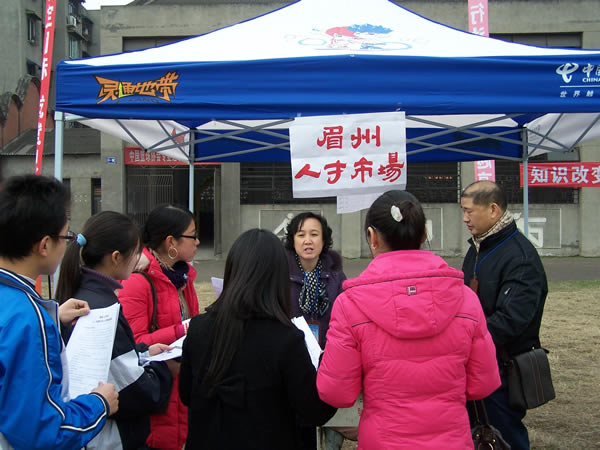 2007年12月31日上午10時(shí),眉州人才市場與眉山職業(yè)技術(shù)學(xué)院聯(lián)合舉辦的“2008屆畢業(yè)生雙選會(huì)”隆重開幕,此次盛會(huì)是眉州人才市場與眉山職業(yè)技術(shù)學(xué)院為解決應(yīng)屆畢業(yè)生就業(yè)的重大舉措,推進(jìn)了該校畢業(yè)生就業(yè)工作,促進(jìn)畢業(yè)生充分就業(yè),為用人單位和畢業(yè)生提供一個(gè)雙向選擇的平臺(tái),此次盛會(huì)有近150家招聘單位蒞臨招聘,2000余名求職者到會(huì)求職。